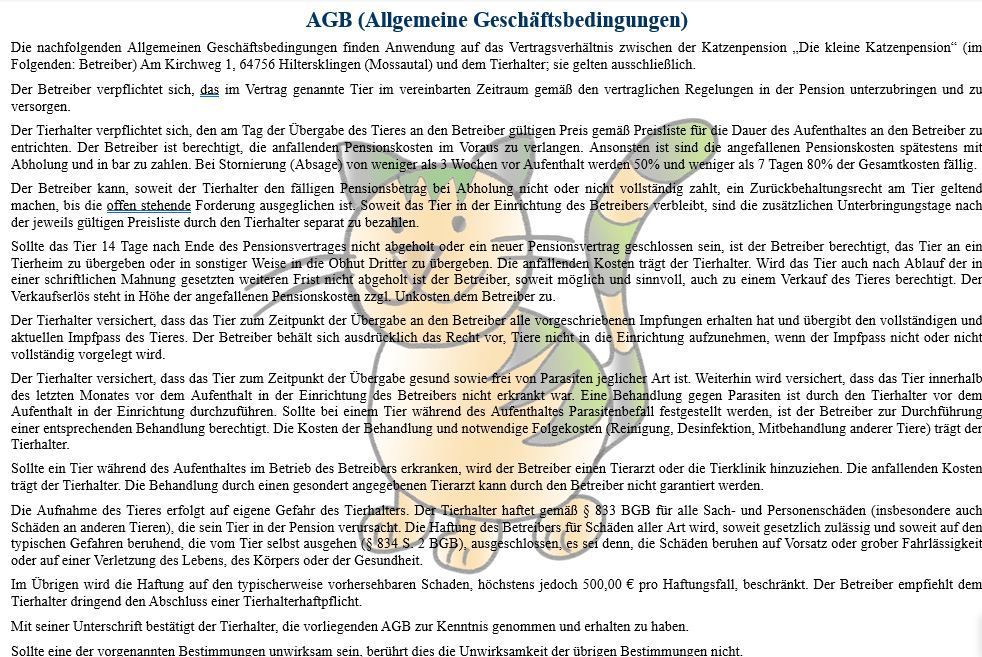 Alle Preise sind incl. Futter, Streu und alles was Ihre Katze sonst noch so mag.
